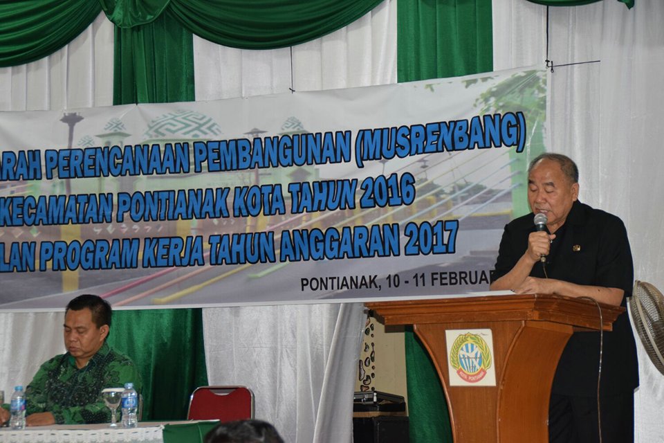 Sekretaris Derah Kota Pontianak, M. Akip, hari ini membuka secara resmi pelaksanaan Musyawarah Perencanaan Pembangunan (Musrenbang) Kecamatan Pontianak Kota, Senin 10 Februari 2016. Kegiatan ini bertempat di aula Kantor Camat Pontianak Kota.